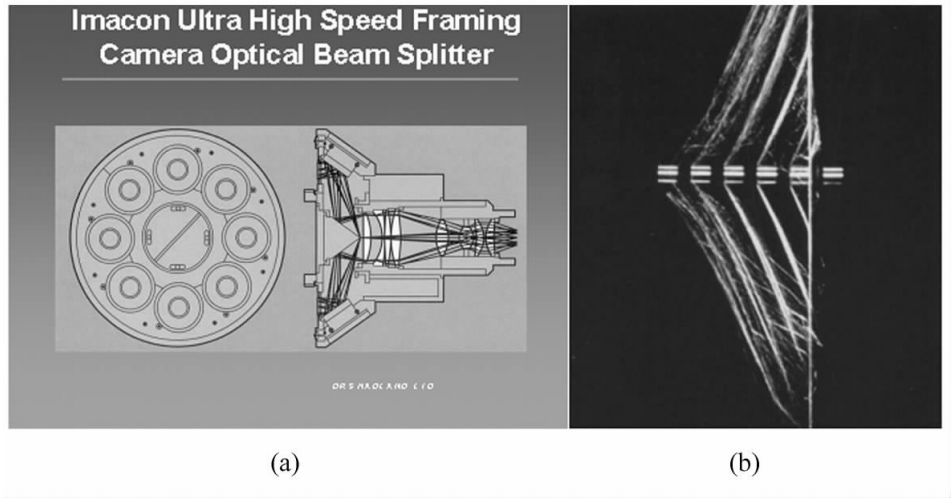 ? ? ? ?高速攝像在對(duì)發(fā)動(dòng)機(jī)凸輪軸的壽命以及石油鉆探機(jī)的彈簧斷裂原因的研究中發(fā)揮了很好的作用。圖為北約組織采用imacon超高速攝像系統(tǒng)測(cè)量模擬碎片撞擊單一Kevlar纖維織物的情形,目的在于研究該材料用作防彈衣的動(dòng)態(tài)特性。