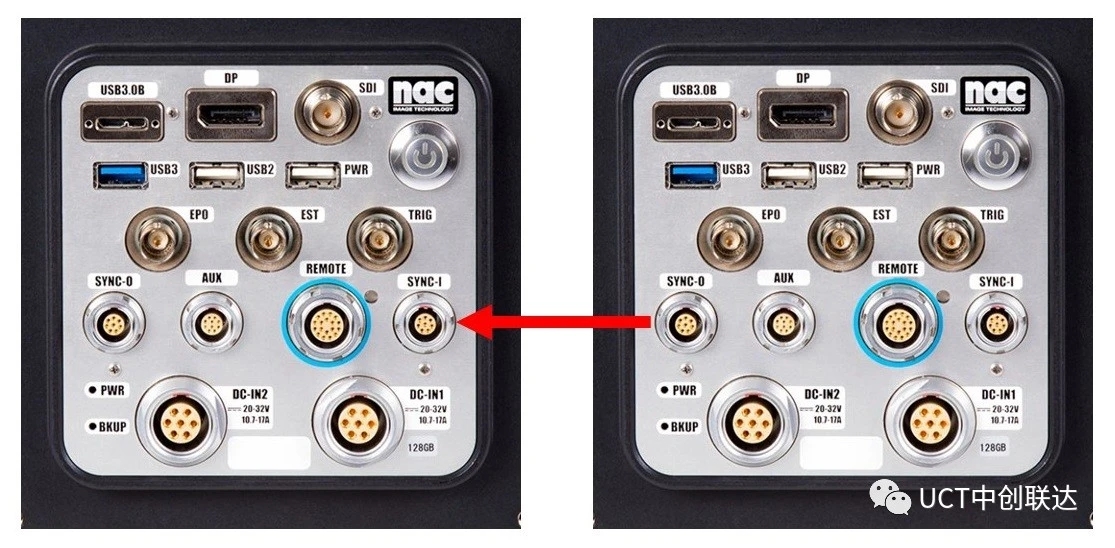 ? ? ? ?ACS系列具有SYNC-IN和SYNC-OUT連接器,用于輸入和輸出同步信號(hào)和觸發(fā)信號(hào)。僅需連接一根電纜即可完成兩臺(tái)高速攝像機(jī)的同步拍攝,而無需準(zhǔn)備外部同步設(shè)備或觸發(fā)信號(hào)分配器之類的輔助設(shè)備。