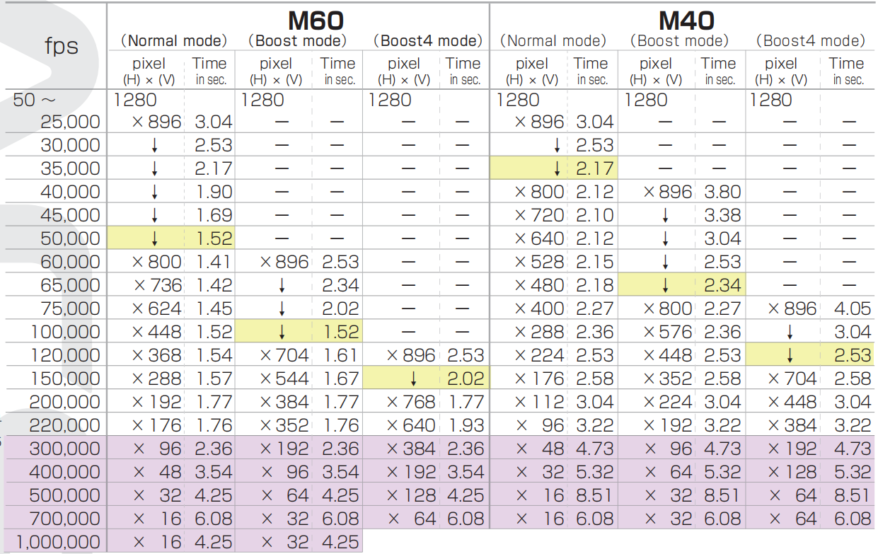 ACS-1是世界上第一款達(dá)到60億像素/秒吞吐量的高速攝像機(jī),在加持了“Boost4 mode”后,即使是在150,000fps下(M60),圖像分辨率依然能保持在114萬像素(1280×896)!